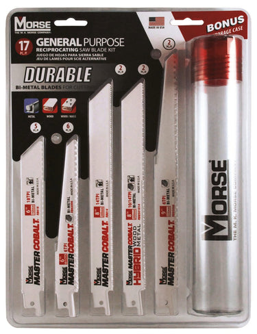 General Purpose Reciprocating Blade Set includes 17 pieces, offering a versatile selection for various cutting tasks, ensuring efficiency and versatility.