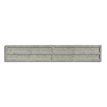 6" concrete gravel board with a recessed face. These boards are designed for use in fencing applications to prevent rot at the base of the fence panel.