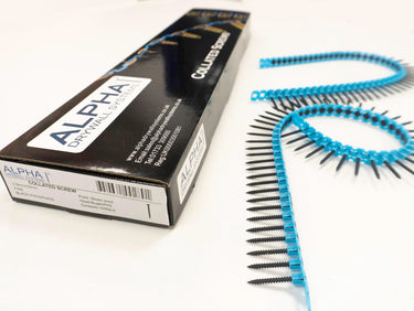 Alpha 38mm fine thread collated drywall screws are suitable for plasterboard fixing to metal stud partitions where additional length is required. Designed for use with collated screw systems and finished in black phosphate. Supplied with 8 boxes per carton and 256 boxes per pallet.