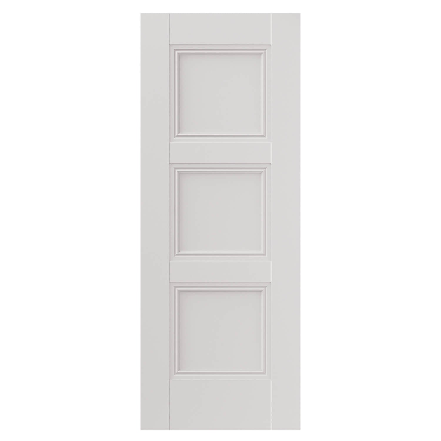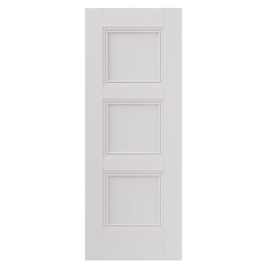 Catton White Internal Door features three recessed panels with a classic white primed finish and decorative flush mouldings, pre-finished for convenience.