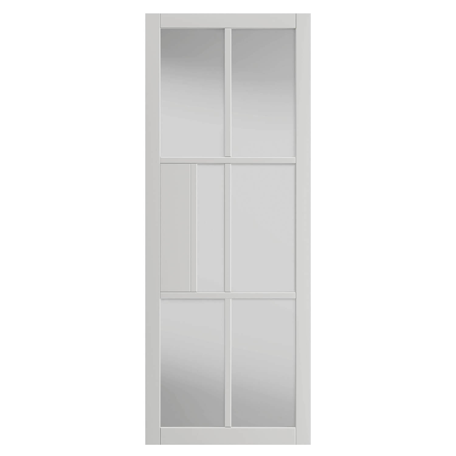 Civic White Clear Glass combines clear glass panels with a sleek white frame, perfect for modern interiors, pre-finished for convenience.