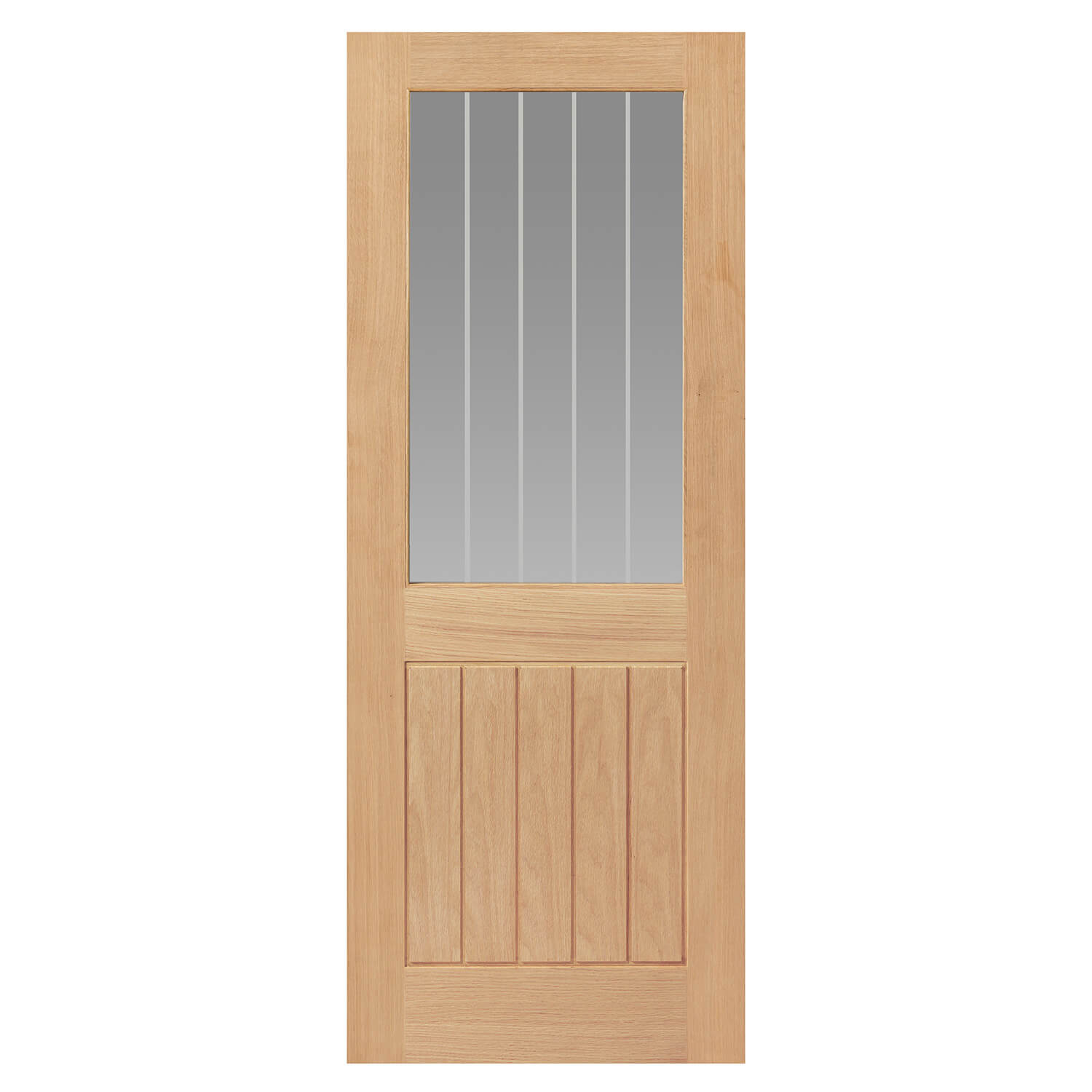 Thames Oak Half Light Glazed Internal Door - Unfinished offers a modern touch with a half-light glazed panel, ready for custom finishes.