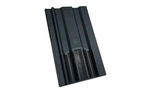 Klober Profile-Line Vent Grey 15" x 9" provides ventilation for 15" x 9" tiles, supporting extraction when used with a 100mm pipe adaptor. Compatible with profiled interlocking roof tiles.